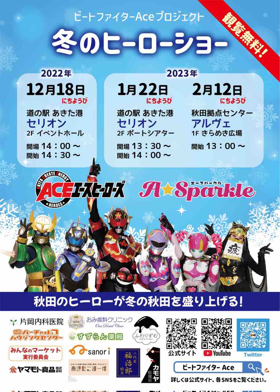 そんな秋田のヒーローたちがに秋田県内はもちろん、全国各地からローカルヒーローを集結して頂いて開催するイベント、AKITAヒーローズステージ2023が5/21(日)に今回と同じALVEきらめき広場で執り行われます。