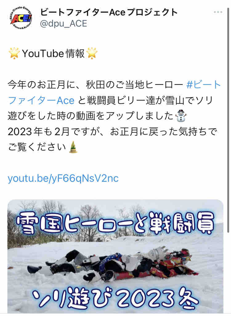 ◆Aceたちの雪遊び動画https://twitter.com/dpu_ace/status/1628259947850117120?s=46&t=-RzNlNxYnHOvzIlzoe-89g